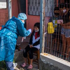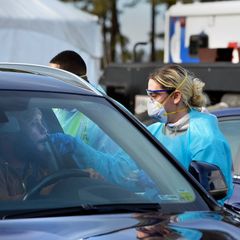 | 1 of 2 | A construction worker receives a COVID test in Syracuse, N.Y., on May 10. (Benjamin Cleeton/The... |